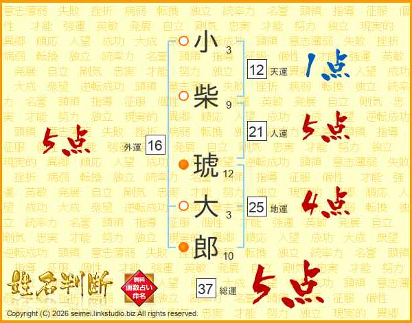 小柴琥大郎さんの総運は37画の5点!