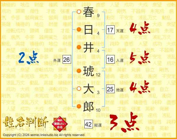 春日井琥大郎さんの地運は25画の4点!
