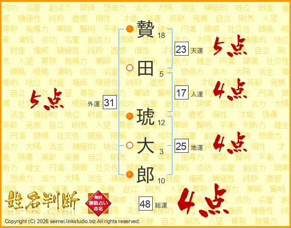贄田琥大郎さんの総運は48画の4点!