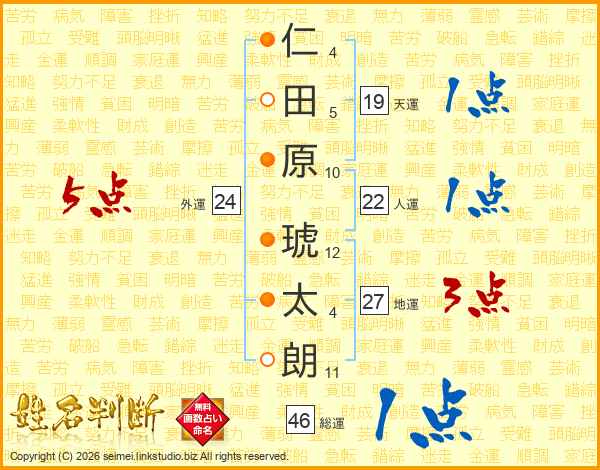 仁田原琥太朗さんの天運は19画の1点!