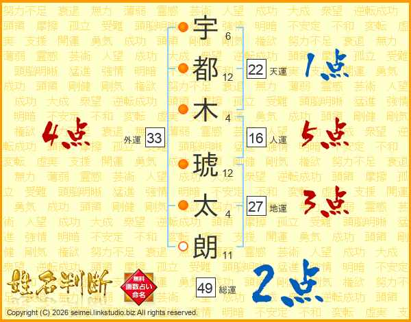 宇都木琥太朗さんの総運は49画の2点!