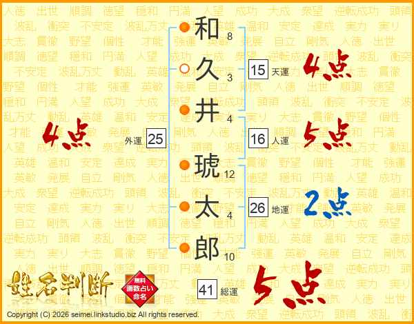 和久井琥太郎さんの地運は26画の2点!