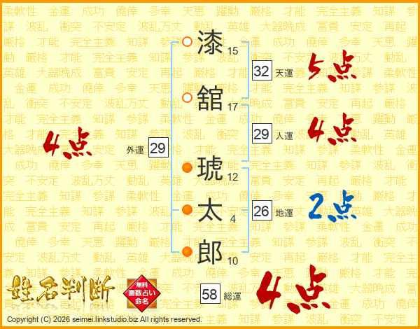 漆舘琥太郎さんの総運は58画の4点!