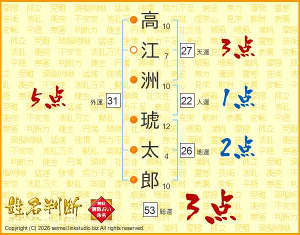高江洲琥太郎さんの天運は27画の3点!