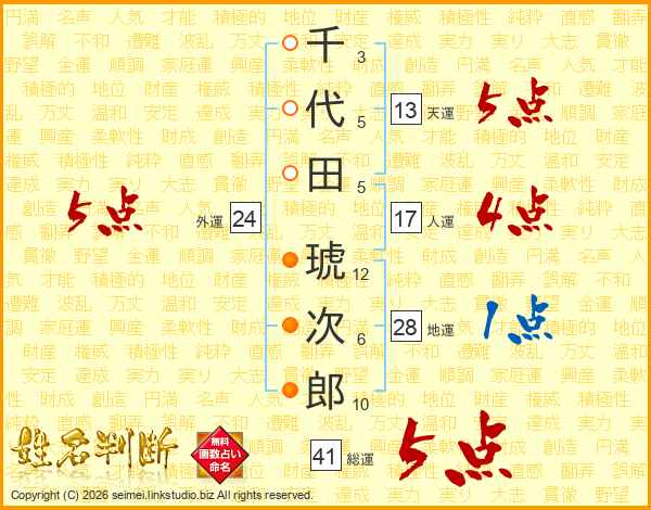 千代田琥次郎さんの総運は41画の5点!