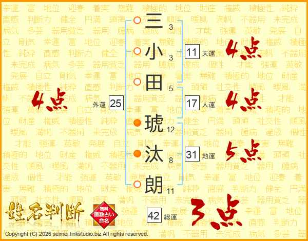 三小田琥汰朗さんの天運は11画の4点!