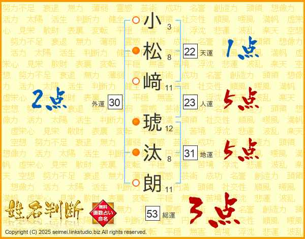 小松﨑琥汰朗さんの地運は31画の5点!