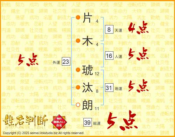 片木琥汰朗さんの総運は39画の5点!