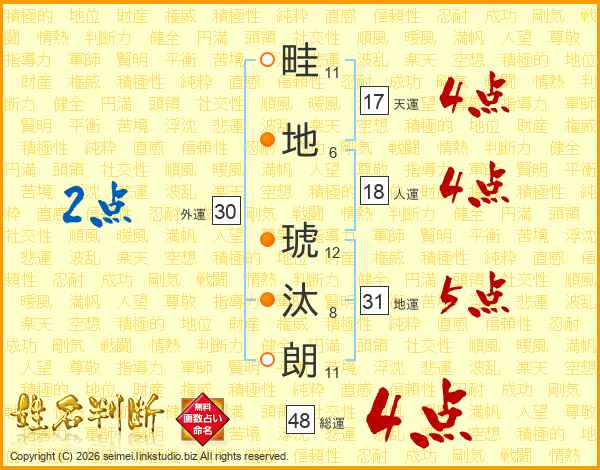 畦地琥汰朗さんの天運は17画の4点!