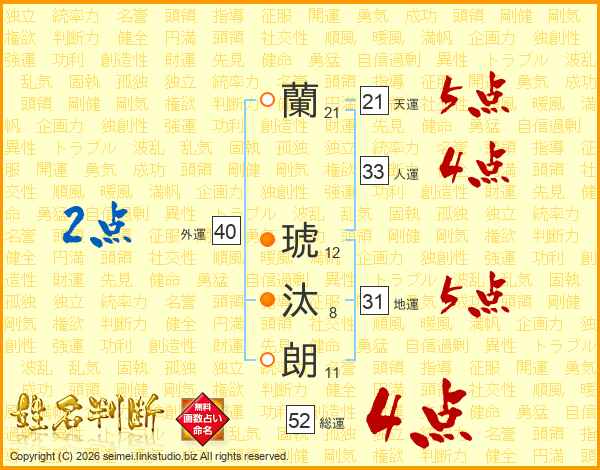 蘭琥汰朗さんの総運は52画の4点!