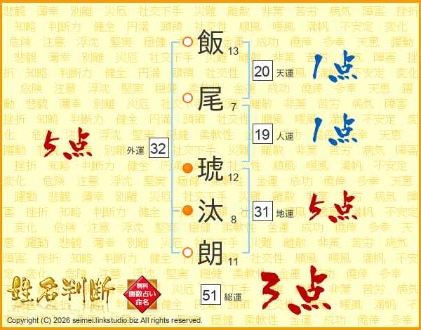 飯尾琥汰朗さんの地運は31画の5点!