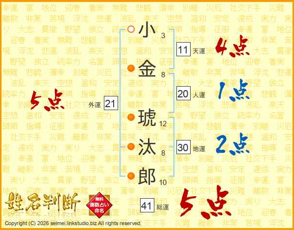 小金琥汰郎さんの総運は41画の5点!