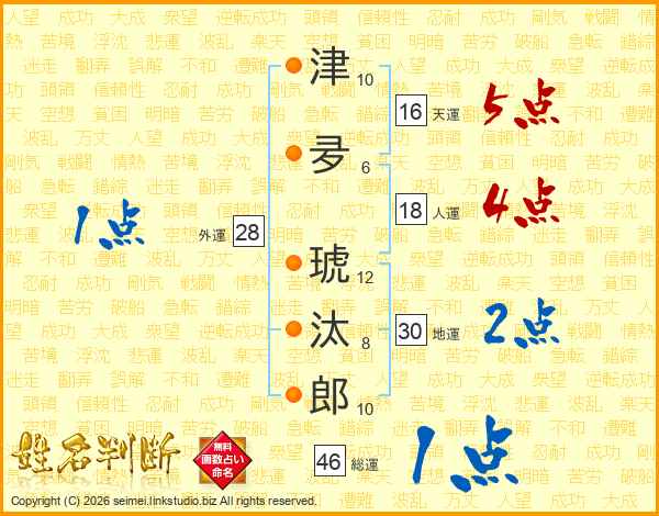 津夛琥汰郎さんの総運は46画の1点!