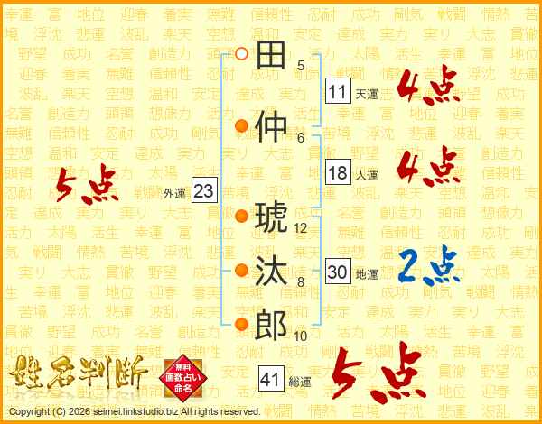 田仲琥汰郎さんの総運は41画の5点!