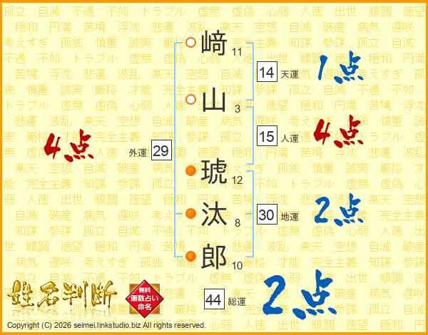 﨑山琥汰郎さんの総運は44画の2点!