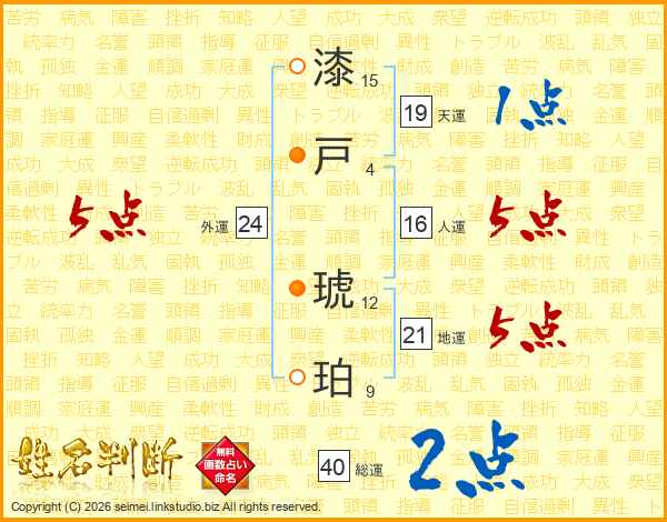 漆戸琥珀さんの総運は40画の2点!