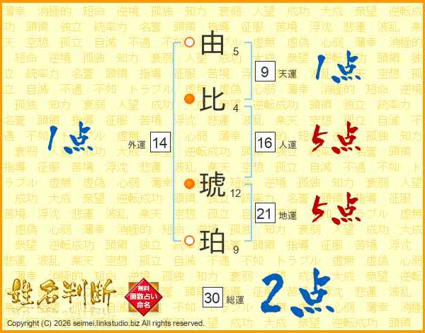 由比琥珀さんの総運は30画の2点!