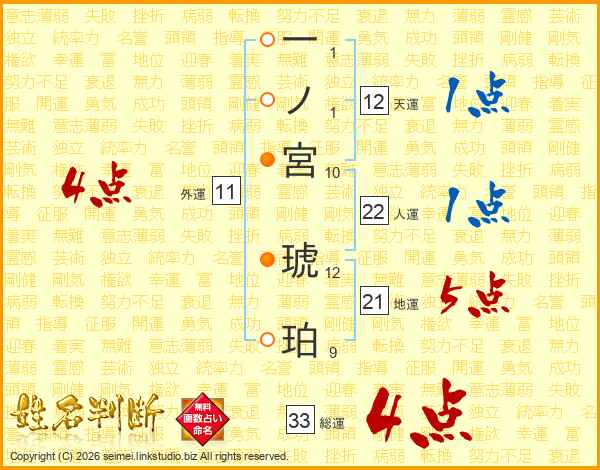一ノ宮琥珀さんの総運は33画の4点!