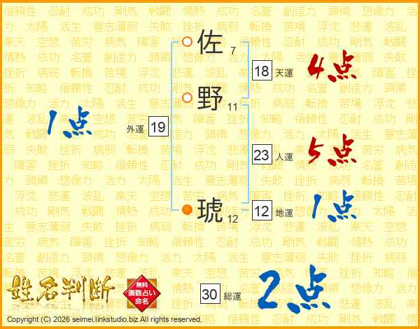 佐野琥さんの総運は30画の2点!