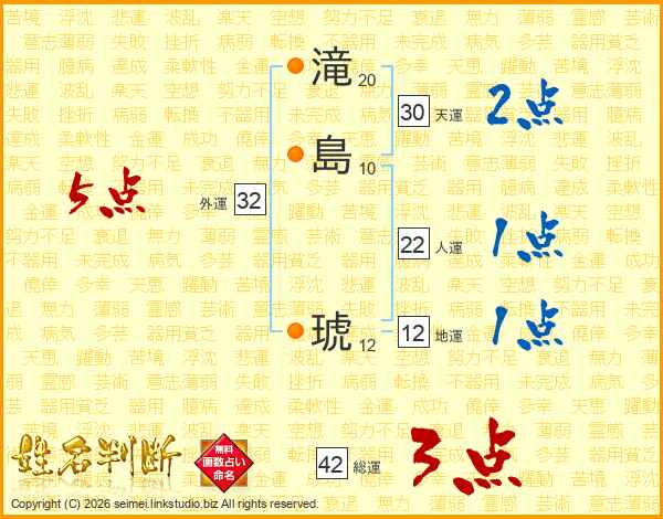滝(20画)島(10画) 琥(12画)
