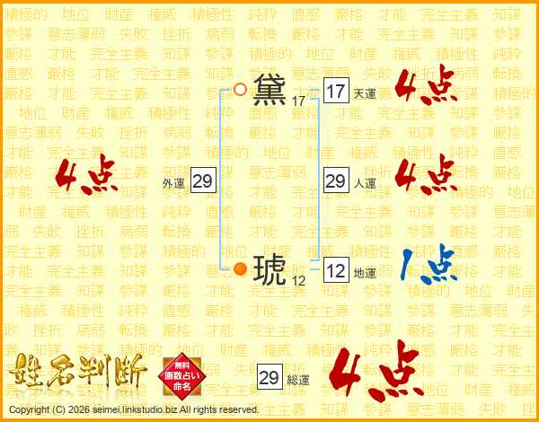 黛琥さんの総運は29画の4点!