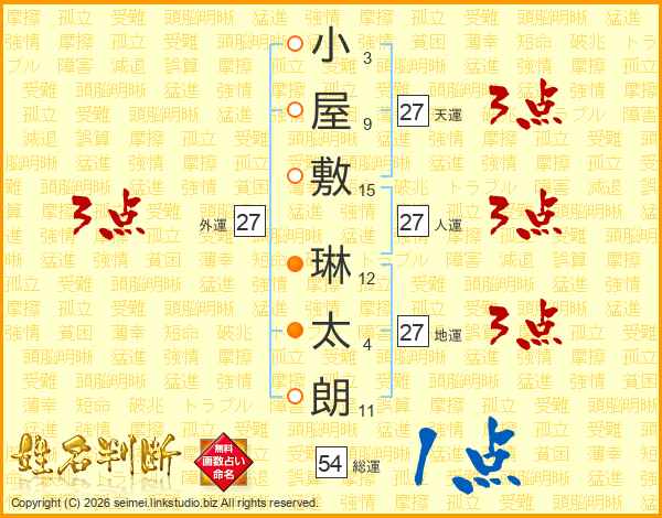 小屋敷琳太朗さんの天運は27画の3点!