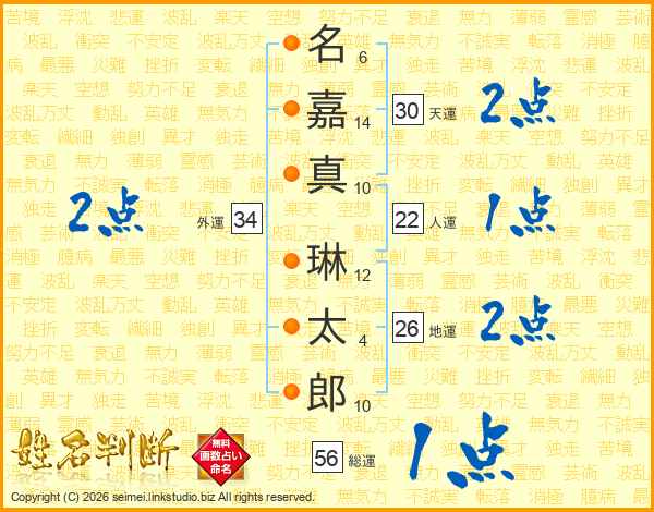 名嘉真琳太郎さんの総運は56画の1点!