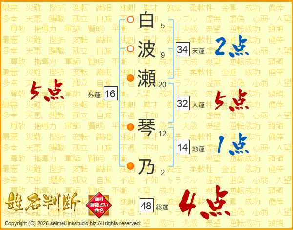 白波瀬琴乃さんの総運は48画の4点!