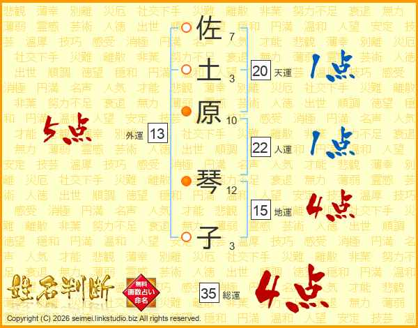 佐土原琴子さんの総運は35画の4点!