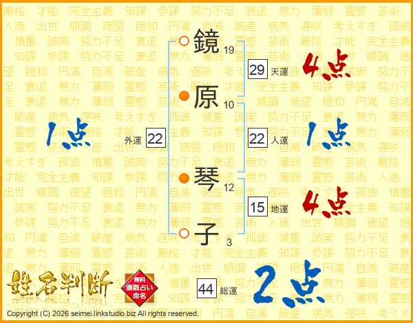鏡原琴子さんの総運は44画の2点!
