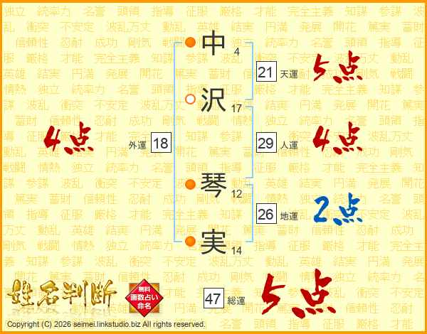 中沢琴実さんの総運は47画の5点!