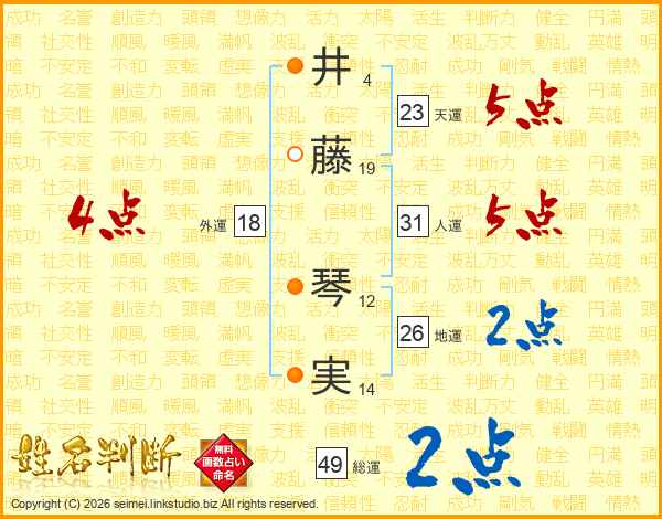 井藤琴実さんの天運は23画の5点!