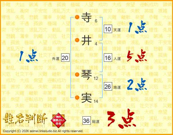寺井琴実さんの地運は26画の2点!