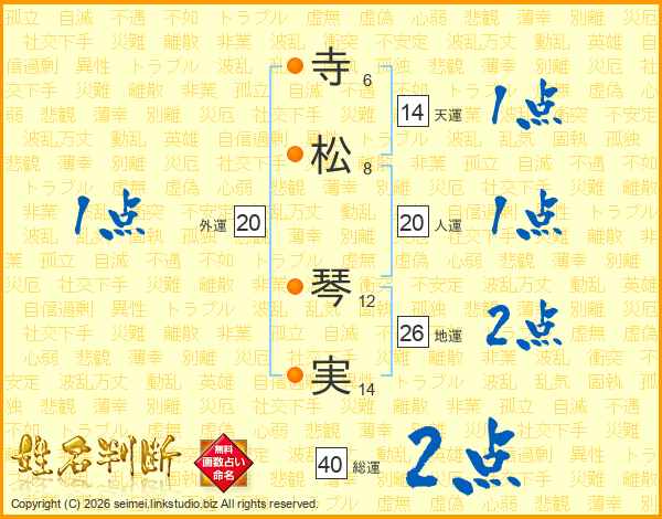 寺松琴実さんの地運は26画の2点!