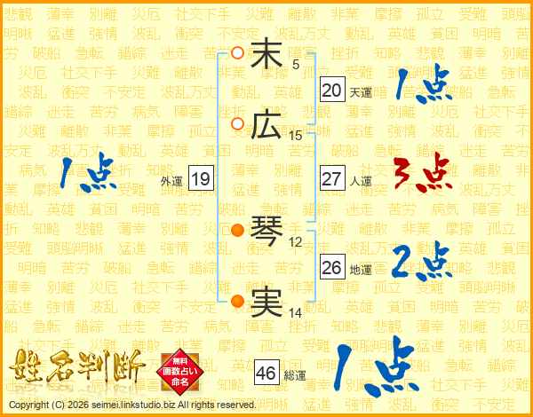 末広琴実さんの地運は26画の2点!