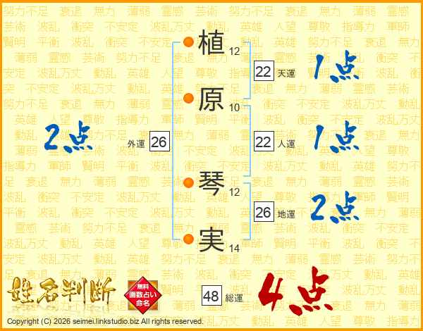 植原琴実さんの総運は48画の4点!