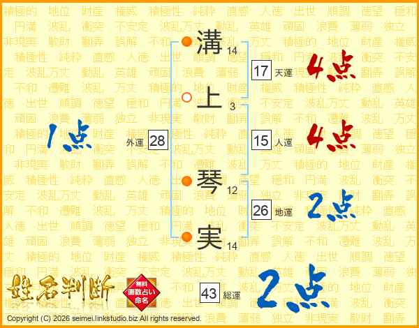 溝上琴実さんの地運は26画の2点!