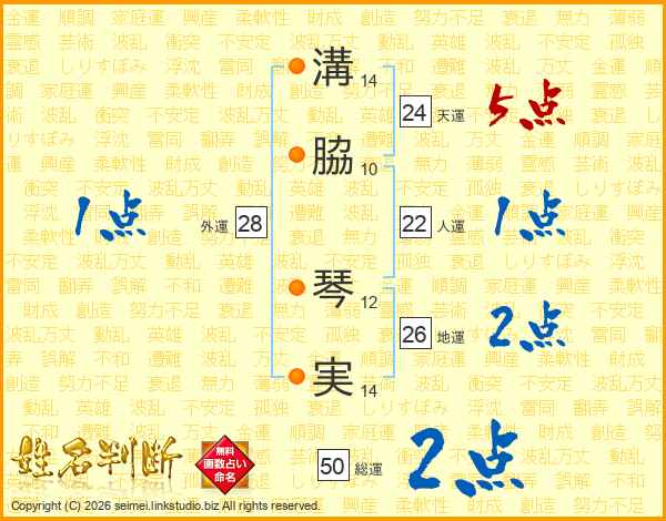 溝脇琴実さんの地運は26画の2点!