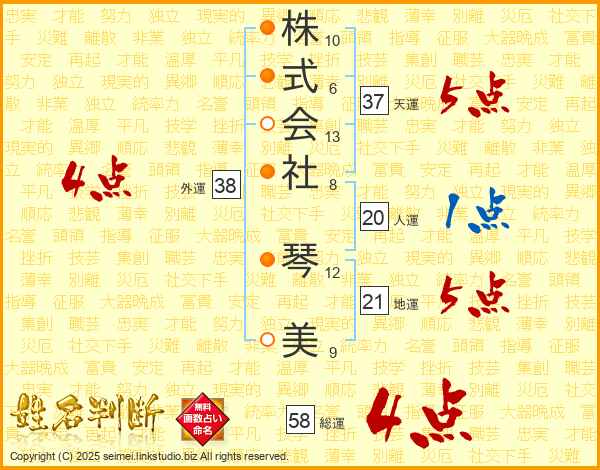 株式会社琴美さんの総運は58画の4点!