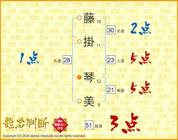 藤掛琴美さんの天運は30画の2点!