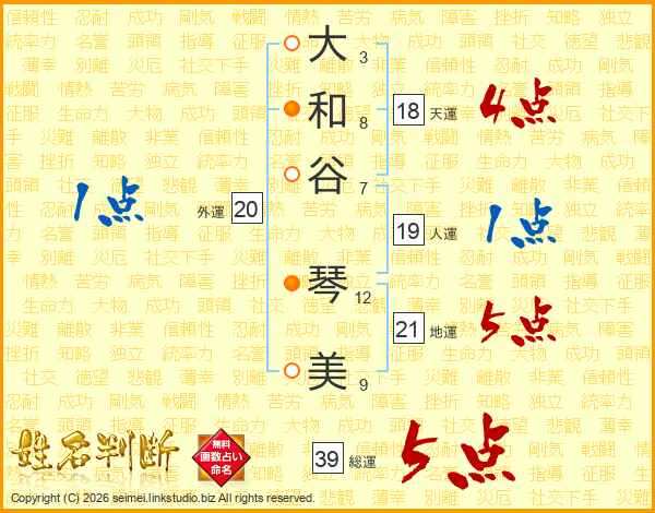 大和谷琴美さんの総運は39画の5点!