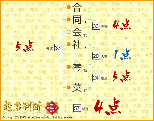 合同会社琴菜さんの総運は57画の4点!