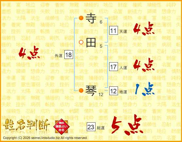 寺田琴さんの天運は11画の4点!
