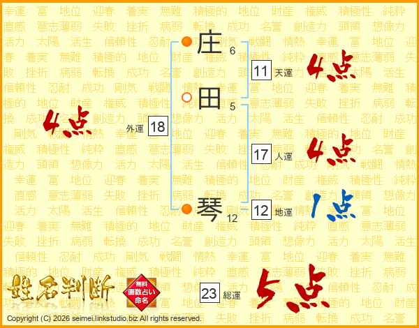 庄田琴さんの総運は23画の5点!