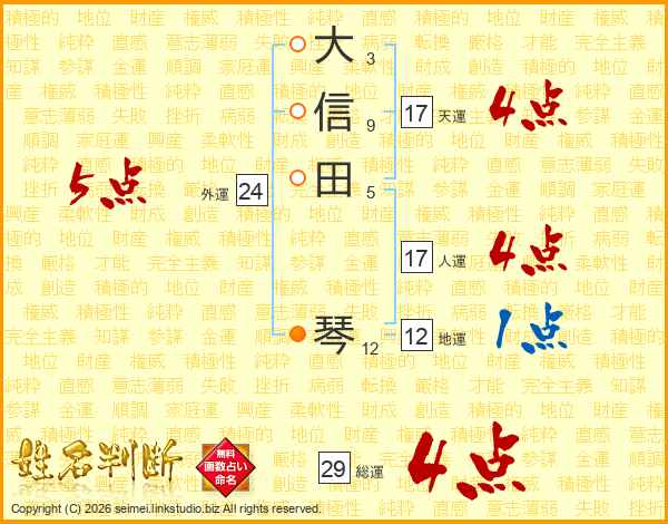 大信田琴さんの天運は17画の4点!