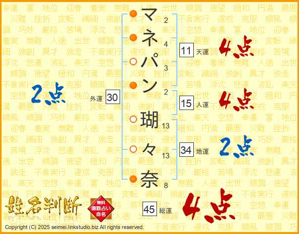 マネパン瑚々奈さんの総運は45画の4点!