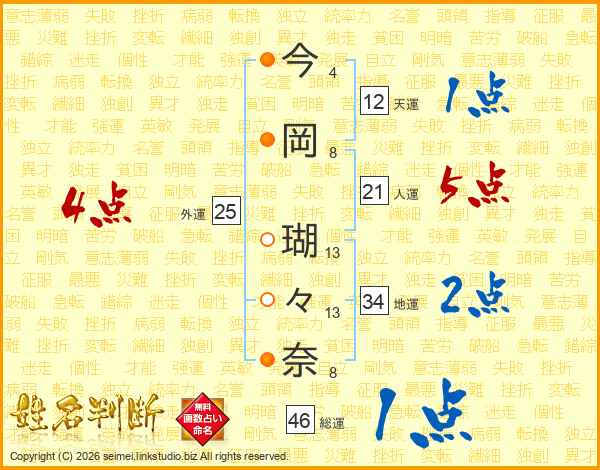 今岡瑚々奈さんの総運は46画の1点!