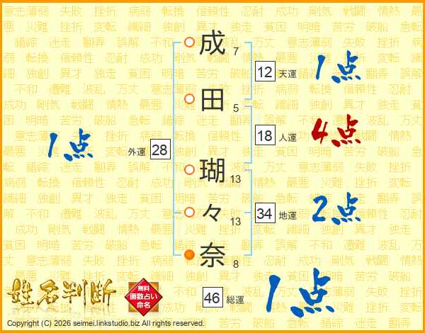 成田瑚々奈さんの総運は46画の1点!