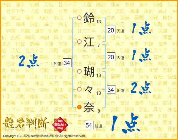 鈴江瑚々奈さんの総運は54画の1点!