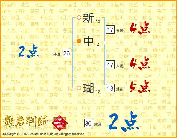 新中瑚さんの総運は30画の2点!